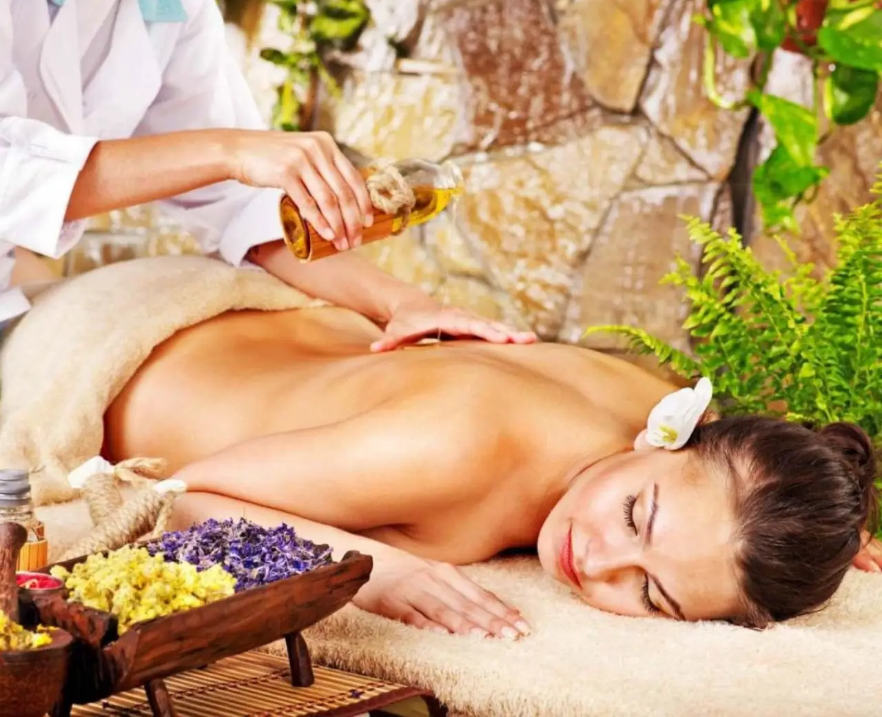 The massage helps alleviate depression, anxiety, and insomnia while acting as a powerful stimulant with potential aphrodisiac benefits. The antioxidant properties of these plants also support cellular health and help prevent aging. Organic plant vapors and oils enhance the treatment, leaving both body and mind refreshed.